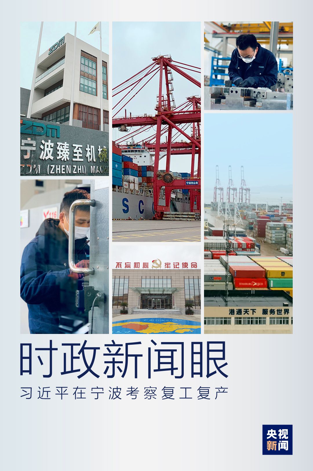 在宁波舟山港,习近平实地了解港口复工复产情况。在疫情冲击之下,宁波舟山港今年前2个月累计完成货物吞吐量1.63亿吨,为去年同期的98%以上;完成集装箱吞吐量406万标准箱,恢复到去年同期的近九成。