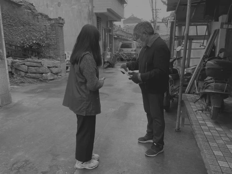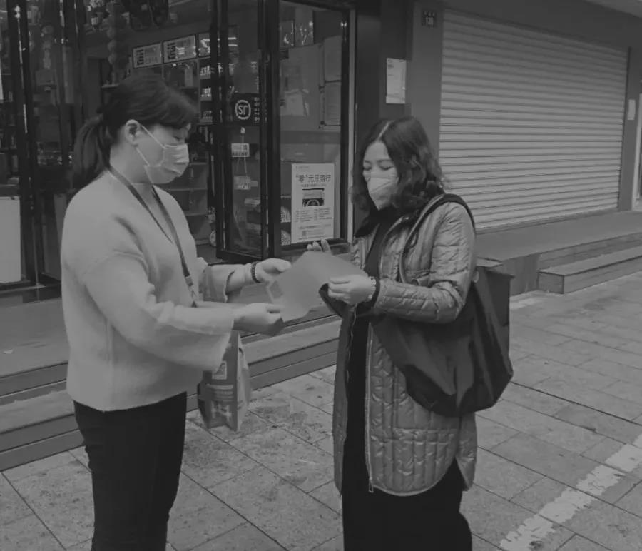 清源街道北门社区组织社区工作人员、志愿者在辖区进行关于暂停清明祭扫的宣传活动。