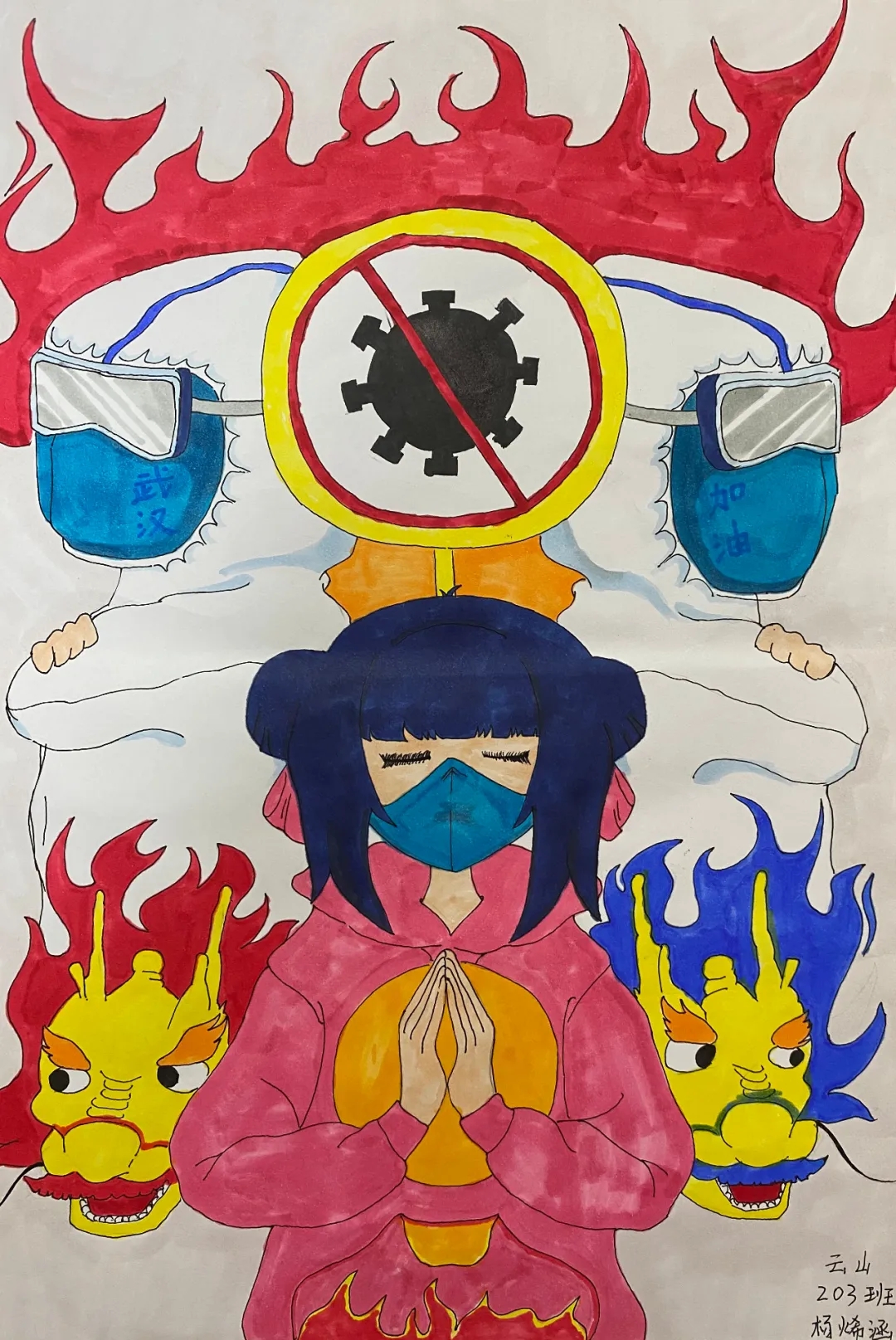 《团结一心抗击疫情》-杨烯涵-9岁-泉州市云山小学-二年级