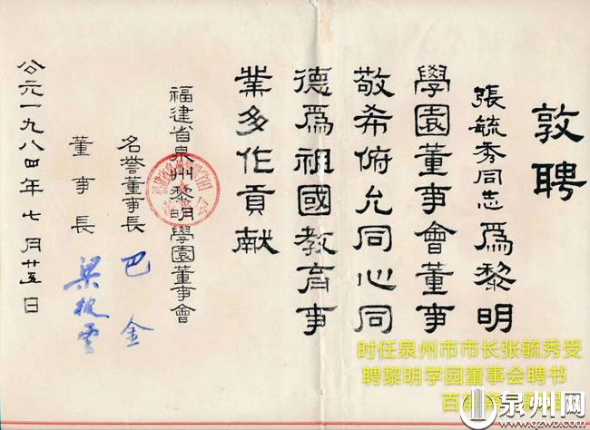 黎明学园董事聘书(黄方供图)