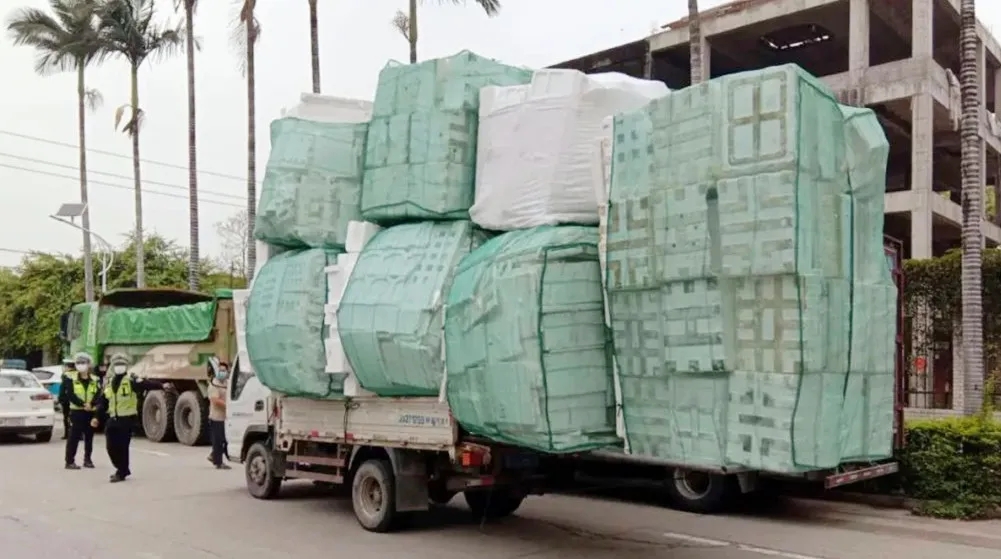 4月7日上午10时许,洛江交警大队民警在国道丰海路路口执勤时发现,一辆小型货车载着比车身尺寸大三倍的物体晃晃悠悠在国道洛滨路掉头往金威酒店方向行驶,其他车辆见状纷纷避让,交警赶忙上前将其截停。
