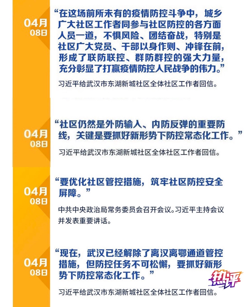 就在武汉“解封”的当天,习近平总书记给武汉东湖新城社区全体社区工作者写了一封回信。总书记的这封信,是写给他考察慰问过的这个社区全体社区工作者的,也是写给全国城乡广大基层一线干部群众的,是一份深情慰问,更是一份殷殷重托。