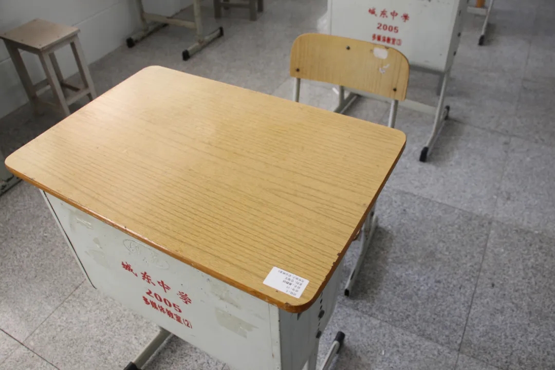 城东中学的临时餐厅“定点定人定位置”,学生在指定的教室和座位用餐,桌角还有该名学生的班级、座号等信息
