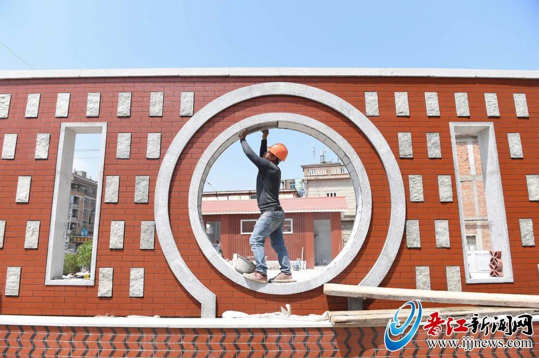 在陈志胜的带领下,记者来到即将建设完工的公园内,只见公园内有不少工人,泥水工人正在抓紧时间进行最后的扫尾工作,绿化工人在种花草,保洁人员正在清理公园地面的装修杂物。而公园内的户外健身器材、公厕、水池、闽南风格墙体、灯光等都已完成。