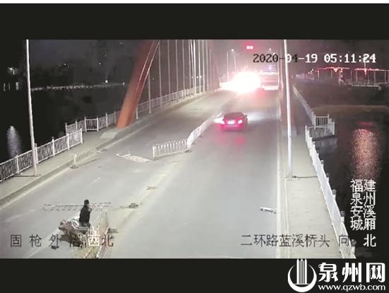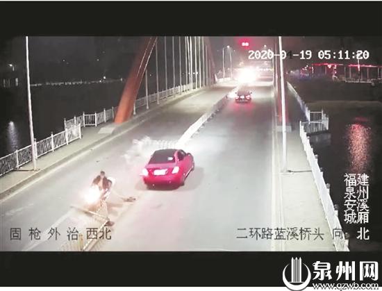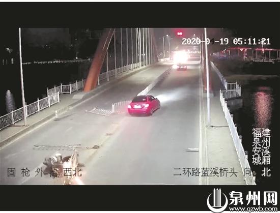 19日凌晨5点多,安溪交警大队民警接到报警称,一辆粉红色的奔驰小轿车在蓝溪桥上撞坏护栏,刮倒对向车道的一辆摩托车后,逃离了现场。接到报警后,民警立即赶往现场处理。