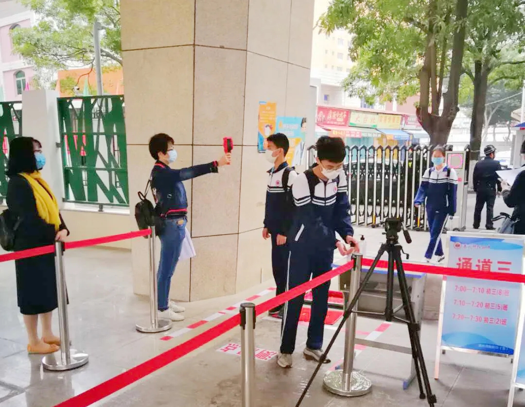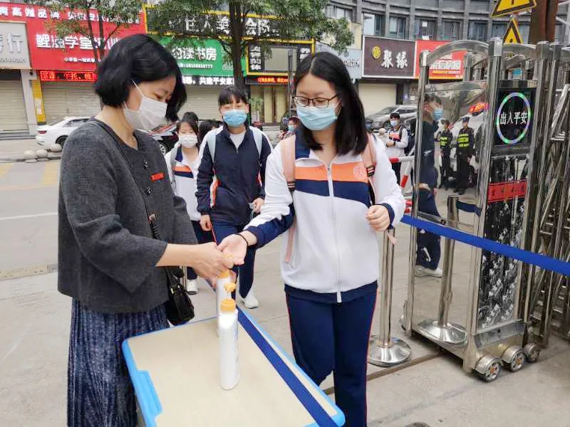 据在九中校门口值班的张老师介绍,该校初三年有500多名学生。复课前,学校就对每一名学生进行了疫情防控的相关宣传,并详细了解学生健康状况,学生每天都要在钉钉上报体温等健康情况。