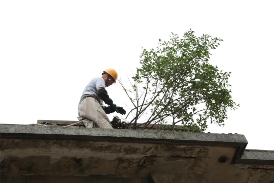 昨天下午,记者随区文物保护中心工作人员,来到位于江南街道王宫社区的王顺兴信局旧址奇园洋楼维护加固现场进行实地察看,施工方正在清理洋楼屋顶、屋檐和墙体等部位的杂草。