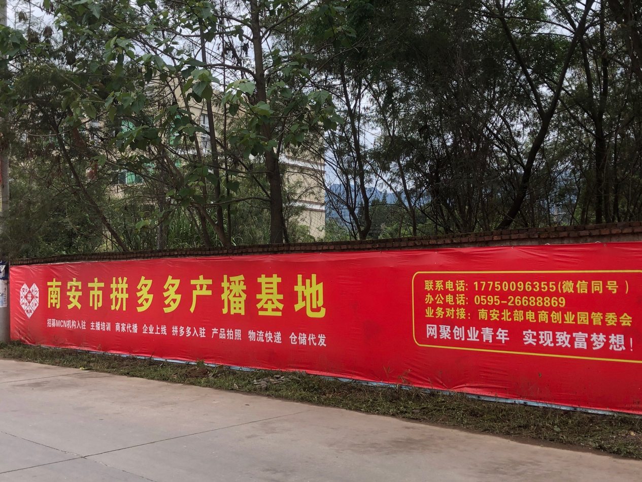 南安的拼多多产播基地的门口,已经挂上了入驻拼多多、直播培训等新电商配套服务的广告。