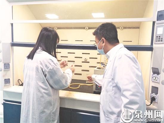 福师大福清分校项雷文教授(右)指导实验室工作 (陈凌鹭 摄)