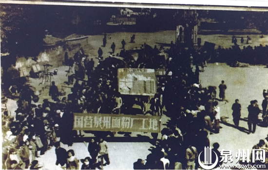 上世纪五十年代,国营泉州面粉厂员工在中山公园举行庆典活动。(叶贻雄收藏)