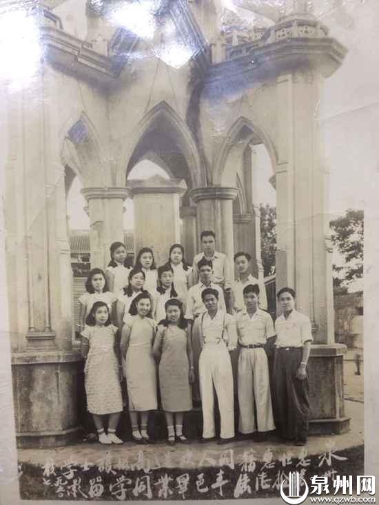 1950年,惠世医院学生在纪念碑前留影。(蔡其呈/供图)