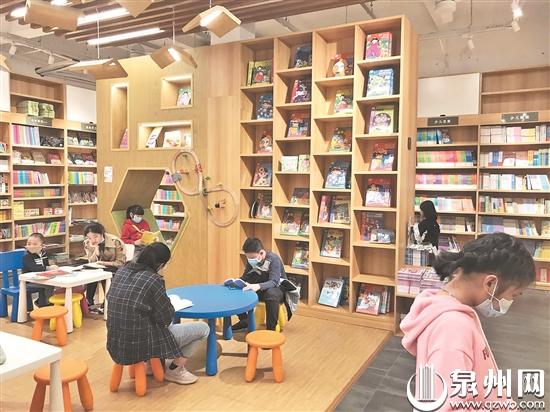 在泉州一家书店内顾客正专心看书、选购