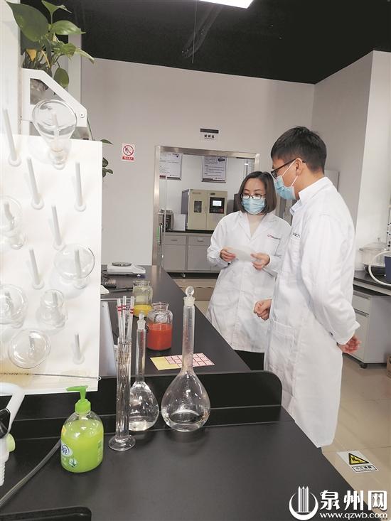 在中纺联检测中心(泉州实验室)里,负责人程淑珍正在进行染化料助剂的扩散性、分散性实验。她说:“我们将染化料助剂进行检测、筛选、优化后,选出最优的一款,企业拿回去就可以直接用,帮助他们少走弯路,减少成本,提升拉链编织带的染色效率。”