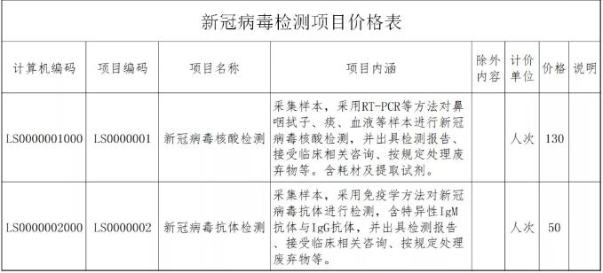 省医疗保障局印发了《关于调整新型冠状病毒核酸检测临时项目价格的通知》,明确新冠病毒核酸检测、新冠病毒抗体检测收费标准包含相关耗材、诊断试剂、提取试剂等收费项目内涵。同时,要求全省公立医疗机构严格执行新型冠状病毒核酸检测收费标准,按规定进行价格公示,规范核酸检测项目收费行为,严禁自立项目收费或分解项目收费、变相提高标准收费、扩大收费范围等违规行为。此价格政策为疫情期间临时价格政策,疫情结束自行废止。