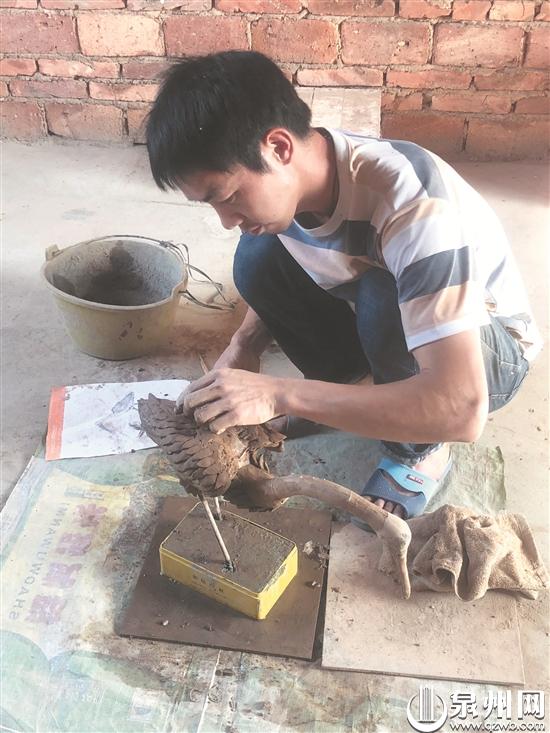 “他从小就喜欢玩泥巴,经常到附近田里玩,后来就带回家里捏。”吴娟娟说,弟弟对捏泥塑特别着迷,有时候早上就开始捏,一直到中午都不肯吃饭,晚上七八点吃晚饭也是常有的事。