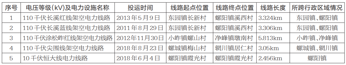 这些电力线路产权单位均为国网惠安县供电公司,基本情况如右表所示: