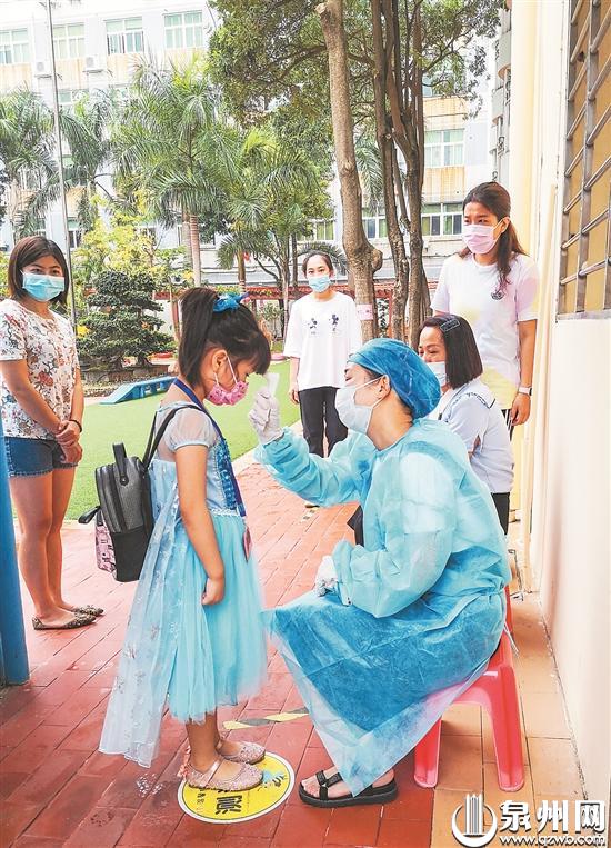 丰泽区实验幼儿园的孩子们在接受入园体检 (林劲峰 摄)