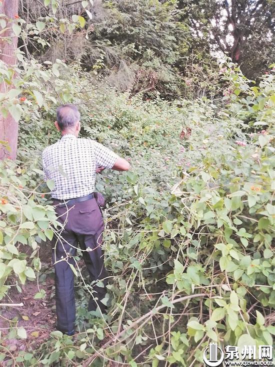 踏勘蔡公泉时,80多岁的当地群众吴老先生为李以健一行披荆斩棘开路。