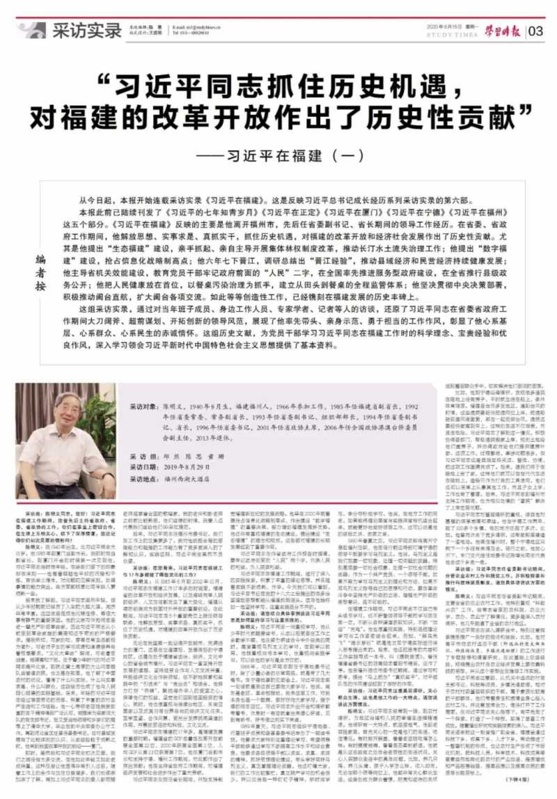 从今日起,本报开始连载采访实录《习近平在福建》。这是反映习近平总书记成长经历系列采访实录的第六部。