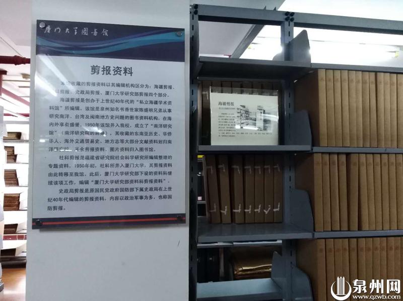 这是厦门大学图书馆特辟的海疆学术资料馆藏书剪报专区一角。(蔡胜铁/供图)