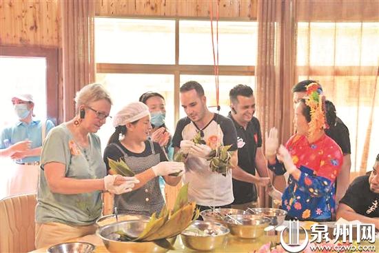 昨日,泉州市古城办、泉州市文旅局组织开展了“海丝泉州 粽情古城”泉州古城文化旅游资源宣传推介活动,由第五届泉州古城英文讲解学员带领外国友人游览古城,全程英文讲解,并体验泉州传统美食制作技艺。