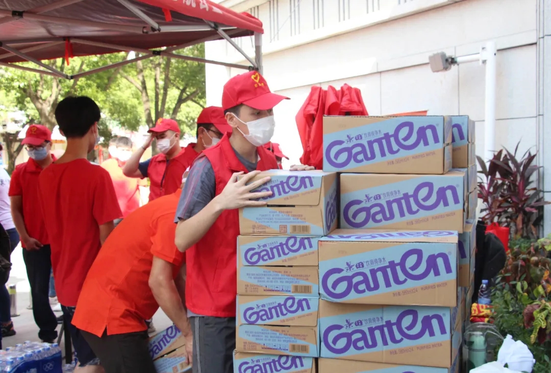 福建省智善慈航公益服务中心响应号召,自愿为考生及家长服务。志愿者们为家长、考生送水,协助维持交通秩序等。(尤芳芳 摄)