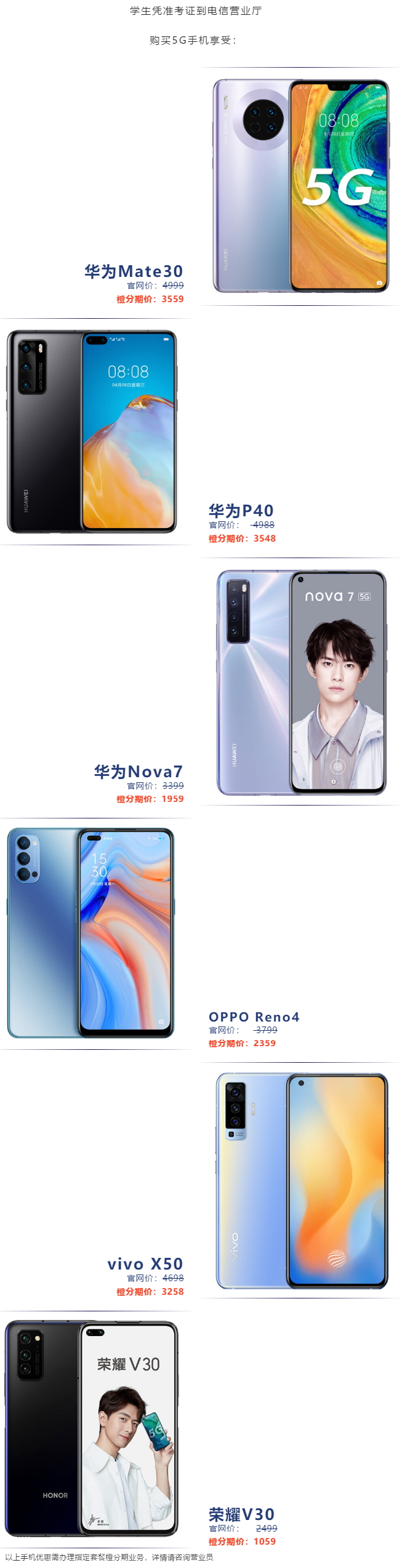 PS:以上手机优惠需办理指定套餐橙分期业务,详情请咨询营业员