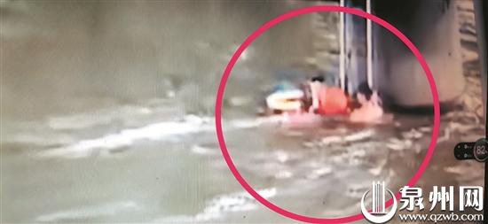 正当谭先生在水里上下沉浮时,泉州市红十字会水上安全救援志愿服务队的义务值班员曾文永也注意到这一幕。他赶忙背上救生圈下水救人。
