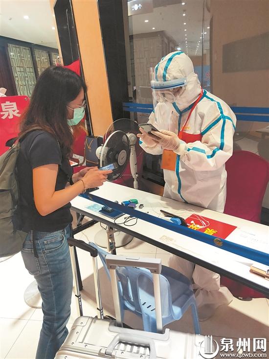 厦门高崎国际机场启泰分流中心,旅客来来往往,来自泉州市光前医院的住院医师邓江龙及男护士张道林,正忙着为刚刚入境的旅客进行登记核查。这已是他们参与泉州驻厦门机场工作组工作的第三周。