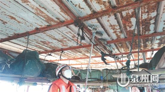 接到报警后,晋江龙湖消防救援站和金井专职队立即赶到现场,搭乘渔民渔船前往海上渔排。经过近十分钟行驶,消防员们顺利到达渔排,发现一条两米长的蟒蛇正盘踞在渔排屋顶下,身体紧紧地缠绕在支撑架上。