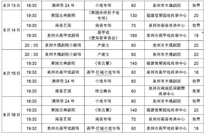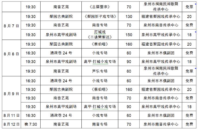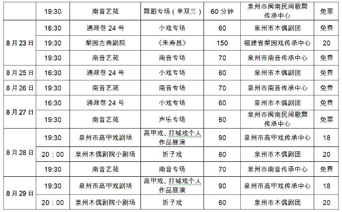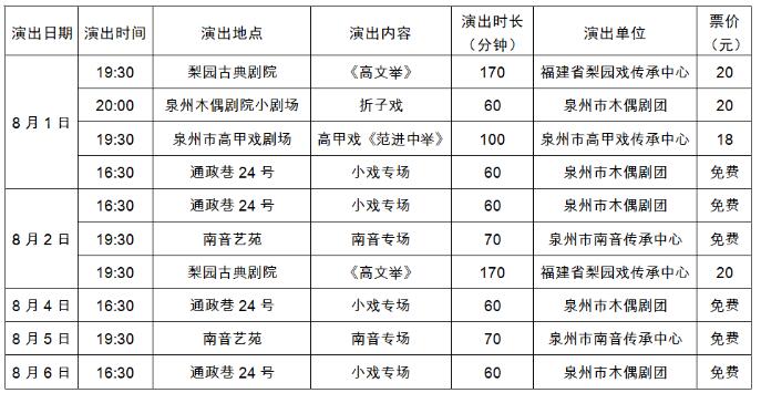 八月泉州市文艺院团演出信息