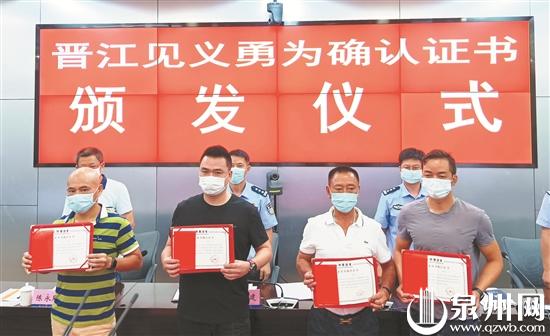 蔡良兴、施国庆的勇敢举动,被网友亲切誉为“骑马救人大侠”。昨日上午,晋江公安将两人的救人行为确认为见义勇为。□记者 张晓明 黄祖祥 通讯员 陈耀宗 庄凌龙 文/图