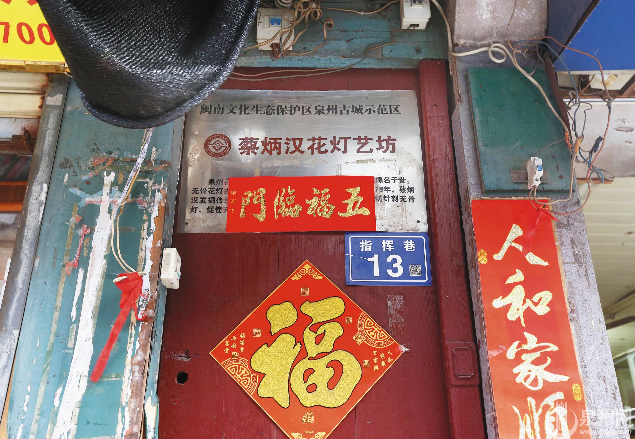指挥巷13号,是个门面非常小的手巾寮,外墙上挂着“蔡炳汉花灯艺坊”的牌子,这里是已故国家级非遗项目泉州花灯代表性传承人蔡炳汉的宅第。