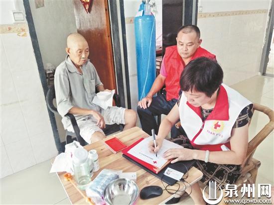 南安市红十字会工作人员帮助吴进忠(左一)完成登记