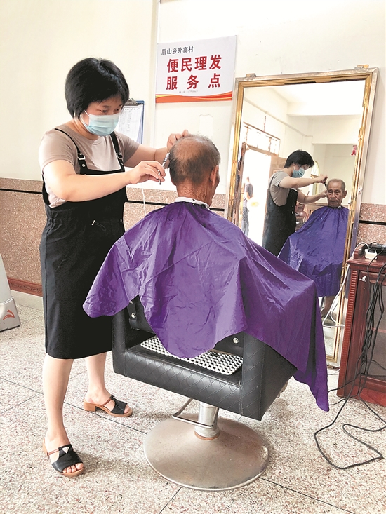 昨日上午,记者来到小眉村大坂祖厝时,20多位老人围坐在一起,他们有的在等理发,有的已经理完在聊天。“到乡政府附近的理发店差不多要5公里,搭‘摩的’来回要20元。”黄秀彩说,她独居在家,孩子都在省外务工,每次理发都要折腾大半天。“不仅不方便,还很危险,”76岁的石沉香说,此前也有“摩的”载老人时发生事故。