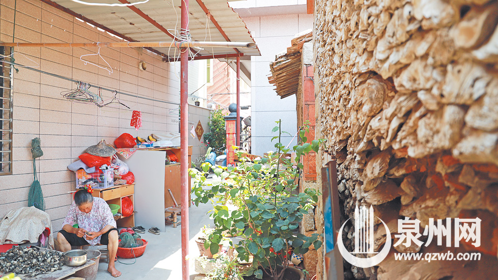 蟳埔路上一位正在开蚵仔(牡蛎)的阿嬷介绍,她家后门正对面,蟳埔村一幢民宅的家主姓黄,鼎盛时有9户人家居住在此。如今,历史已落在了时间身后,虽然墙体破败,露出内里的砖石,但牡蛎壳墙依然风采不减。