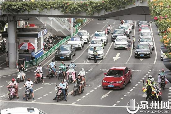 对于新的通行模式,市民是否适应?记者观察发现,不少市民到达路口时有点不知所措。在温陵路由北往南的非机动车道上,多名市民到达路口处就愣住了,“能不能过去?”市民询问了现场执勤的交警后,才将车驶入非机动车待行区。
