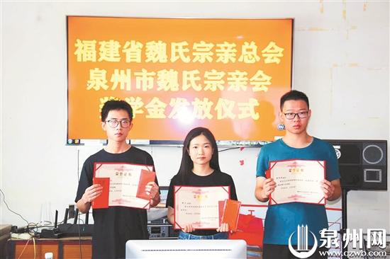 魏凡(中)今年再次获得魏氏宗亲会奖学金,她毫不犹豫将5000元捐给雅婷治病。