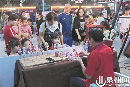 以“洛江非遗展演+音乐+创意表演”为主轴的快闪演出,融合了非遗文化表演提线木偶、魔术和变脸、婉转悠扬的民谣音乐弹唱等多种传统、时尚的艺术形式,得到了各个年龄段市民的青睐;包括非遗传承人、独立艺术文化工作者、传统手作匠人、美食生活家、旧物收藏达人等20位具有泉州本土文化特色的手艺人的市集,展出了琳琅满目、匠心独具的陶瓷器具、手工冷制皂、妆糕人、糖画、绣品、饰品等手作物品,成为不少人“淘宝”的好去处。