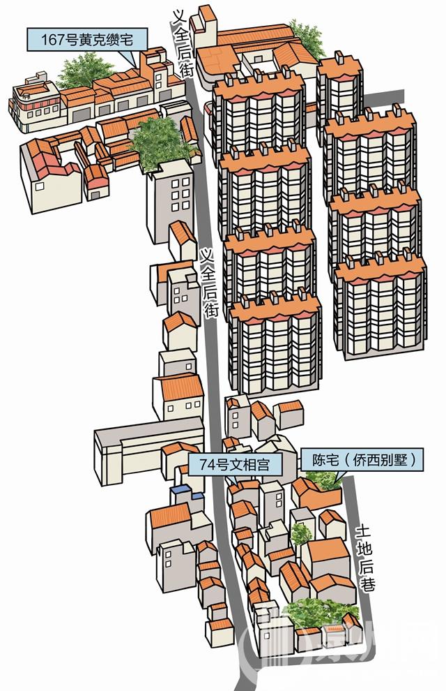 在老街坊的带领下,沿着曲折的巷子前行,来到义全后街167号,眼前的小洋房,便是一代名臣黄克缵故居所在地。