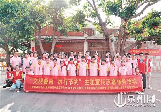 培元中学的学生们走出校园,参与“文明餐桌”宣传活动。