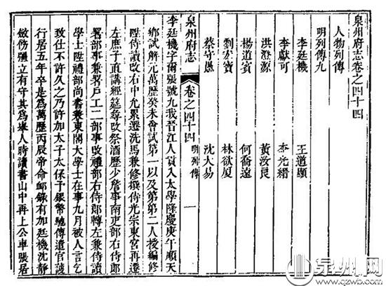 乾隆《泉州府志》中有李廷机的人物列传