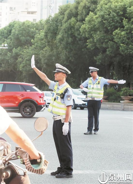 在刺桐路与丰泽街交界的岗亭,一名协勤人员刚从路口下来,浑身是汗,脱下帽子,坐在岗亭背面。这个岗亭的交警、协勤人员也长时间坚守。“组织引导市民文明出行、安全出行,是我们义不容辞的责任,我们会切实引导交通参与者改变不良交通习惯,全面提升文明交通指数。”