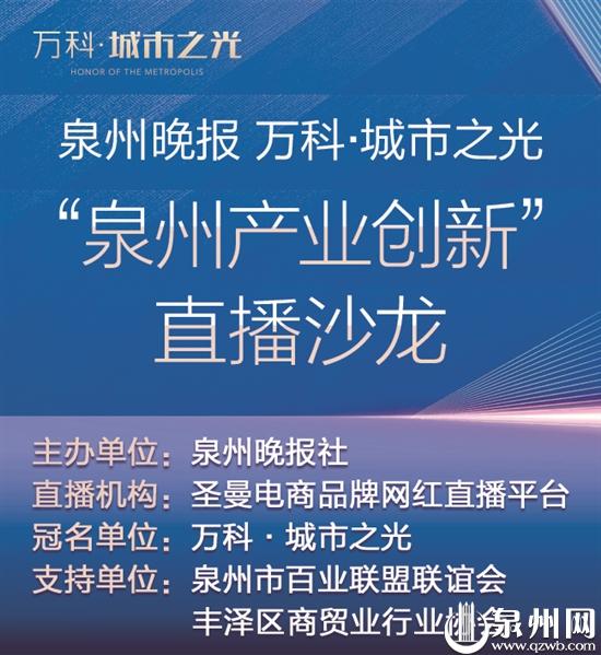 泉州网9月18日讯 (记者 殷欣)当前市场环境下,企业如何“触电”直播带货,主动创造机遇?由泉州晚报社主办,万科·城市之光总冠名,泉州市百业联盟联谊会、丰泽区商贸业行业协会携手合作,圣曼电商品牌网红直播平台作为直播机构,泉州晚报社旗下东南早报抖音、泉州通APP、泉州网、东南早报官微等全媒体矩阵鼎力直播的“泉州产业创新”直播沙龙,将于本周六、周日下午3:00,在泉州市政府旁——ITC万科中心(写字楼)B座的万科·城市之光营销中心接连举办两场活动,以专业的角度为中小企业主深度解读。
