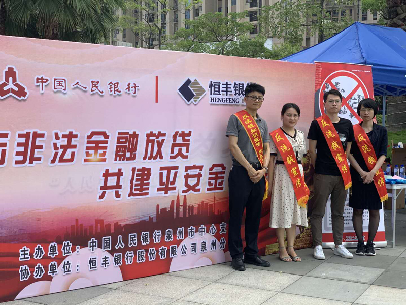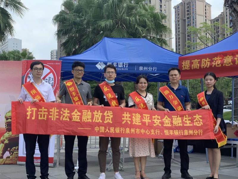 为了增强社会公众参与金融活动的风险识别能力与自我保护意识,引导公众通过正规渠道办理金融借贷,鼓励广大群众自发、广泛参与防范打击金融放贷涉黑涉恶违法犯罪,共同维护金融秩序与社会和谐,人民银行泉州市中心支行携手恒丰银行泉州分行在华大社区中骏世界城广场共同开展以“打击非法金融放贷 共建平安金融生态”为主题的宣传活动。‘