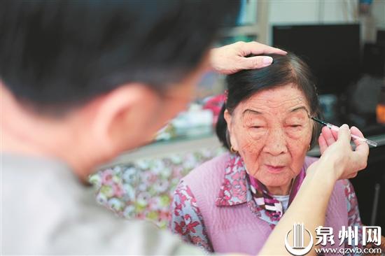 在洛阳古街生活的王阿婆,带着点“文艺范”,她曾是洛阳有名的“金嗓子”。在那段艰苦岁月里,她辛勤抚育七个儿女,用闽南童谣、泉州民俗故事教导儿女为人处世,传承良好家风。如今,身体还算健朗的王阿婆疼爱晚辈,心系社会,慈祥有爱。她的儿女们知道母亲是个爱美之人,常会轮流帮她画眉梳妆。