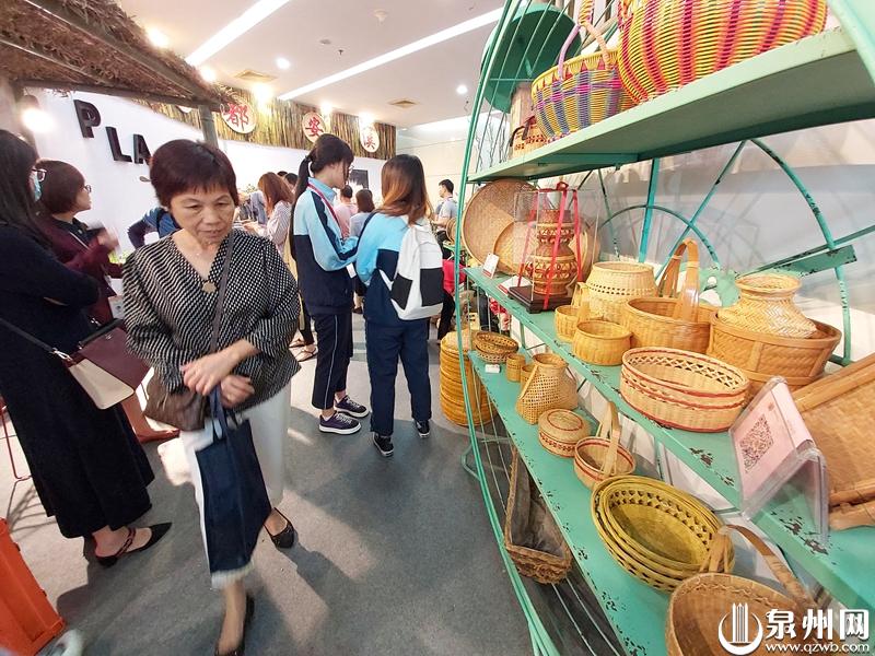市民参观安溪竹编工艺品(陈晓东 摄)