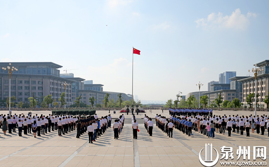 参加国庆升旗仪式,祝福祖国更加繁荣富强(陈起拓 摄)