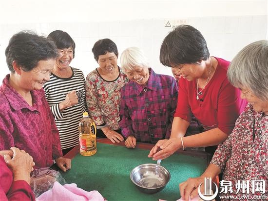 昨日,在永春湖洋镇吴岭村,参加博饼活动的老人脸上洋溢着笑容。