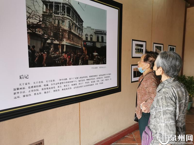 84岁的王女士和80岁的妹妹住在城南中山路大隘门附近,她们手牵手来看展览。在刘胜裕总行大楼的老照片前,姐姐回忆说,当时她们家的长辈是城南码头上搬运公司的,自己当年还在刘胜裕总行里面做过事,看到这几十年前的大楼照片,一下就回想起往事:“这在当年是泉州的高楼,对面是侨光电影院,我们那时都喜欢‘看侨光,吃远芳’,旁边是指挥巷……”。